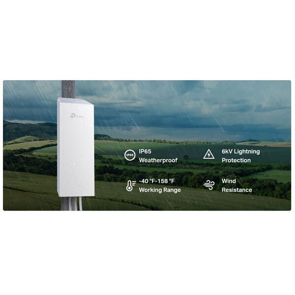 - IP65 устойчив на атмосферни влияния корпус и 6kV мълниезащита гарантират пригодност за всякакви метеорологични условия.