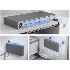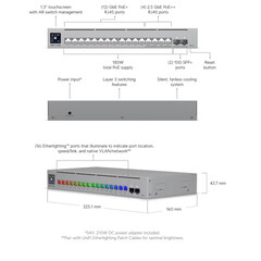 - A 16-port, Layer 3 Etherlighting™ switch with 2.5 GbE, PoE++ output, and versatile mounting options.