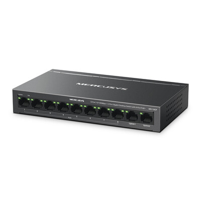 - 240 W PoE Budget: 8× 802.3at/af-compliant PoE+ ports with a total power supply of 240 W.