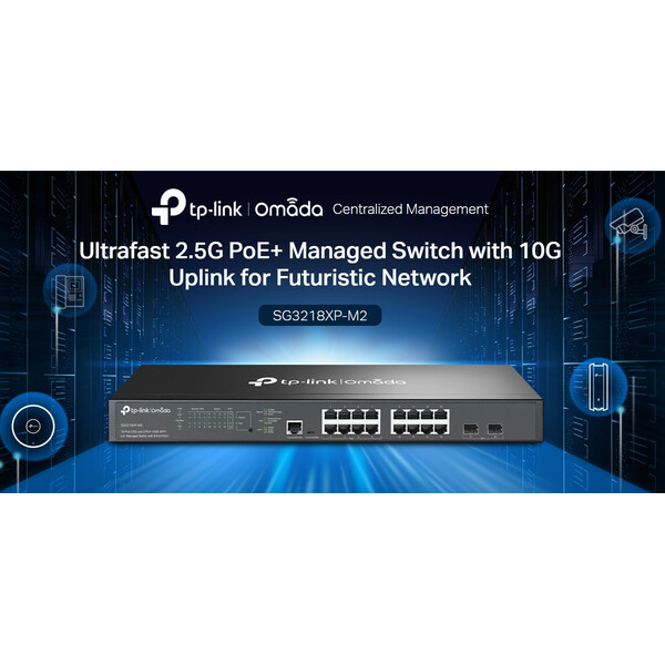 TP-Link Omada SG3218XP-M2 16-Port 2.5G and 2-Port 10GE SFP+ L2+ Managed Switch with 8-Port PoE+