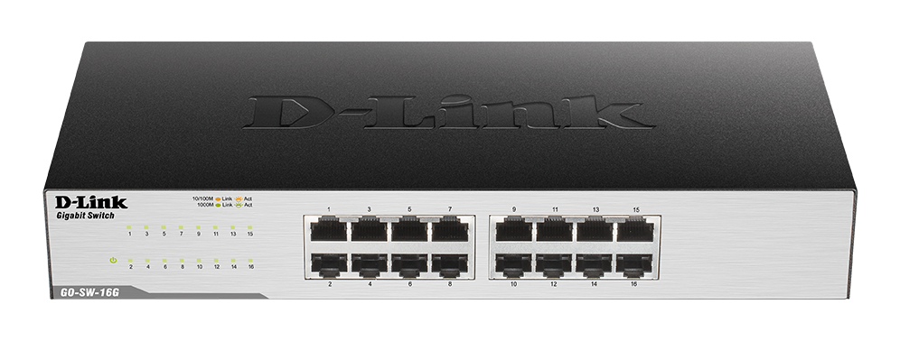 The D-Link GO-SW-16G/E 16-Port Gigabit Easy Desktop Switch is an economical, plug-and-play networking  switch  solution  for  SOHO  and  small  and  medium  businesses  wanting  to  benefit  from  the  increased  bandwidth  of  Gigabit  Ethernet.  It  provides  16  or  24  10/100/1000  Mbps  ports that enable you to easily expand your network and provide a quick way to upgrade your network to fast connectivity.