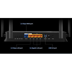 - 2× 2.5G Ports: 1× 2.5 Gbps WAN port, 1× 2.5 Gbps LAN port and 3× 1 Gbps LAN ports offer high-speed data transmissions.