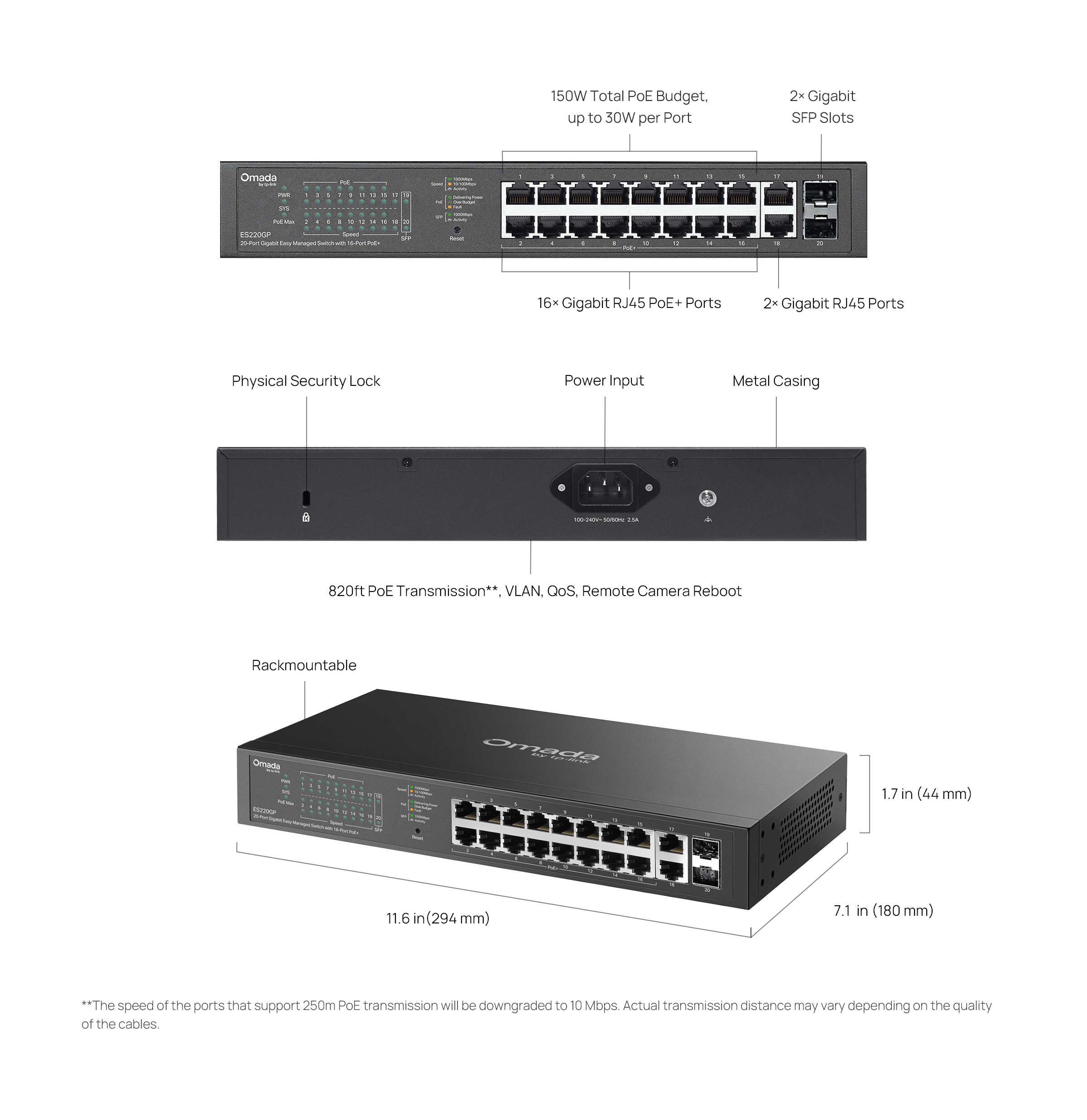 20-Port Gigabit Easy Managed Switch TP-Link Omada ES220GP with 16-Port PoE+