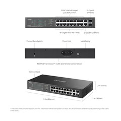 • PoE Budget: 150W available for all PoE+ ports, 30W max per port