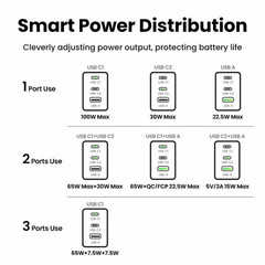 Ports: 2 × USB-C, 1 × USB-A – charge up to 3 devices simultaneously