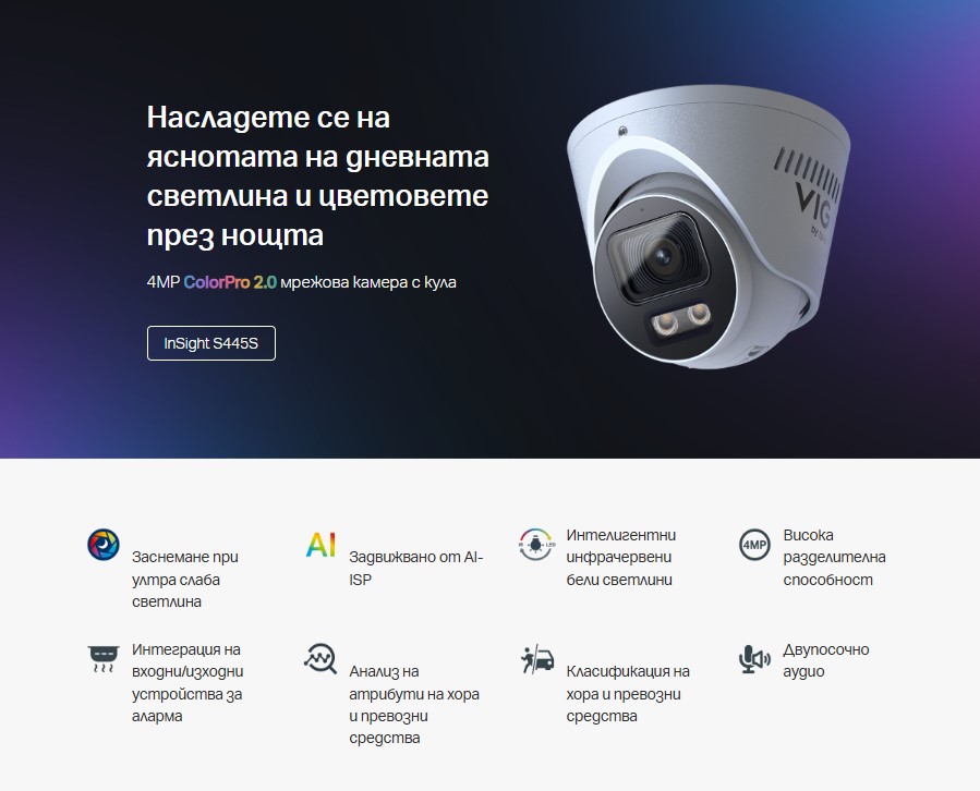 Позволява пълноцветно изображение в условия на слаба светлина без запълващо осветление, намалявайки както консумацията на енергия, така и фалшивите аларми, задействани от насекоми, за по-екологично решение.