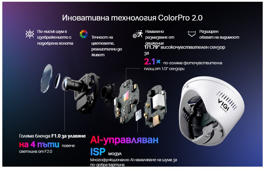- Нощно виждане с ултра слаба светлина, захранвано от AI-ISP