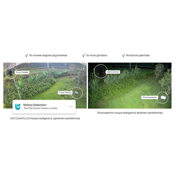 Разкриване на всеки детайл в тъмното, усещане за яснота и цвят, толкова ярки, колкото на дневна светлина — без нужда от допълнителни запълващи светлини.