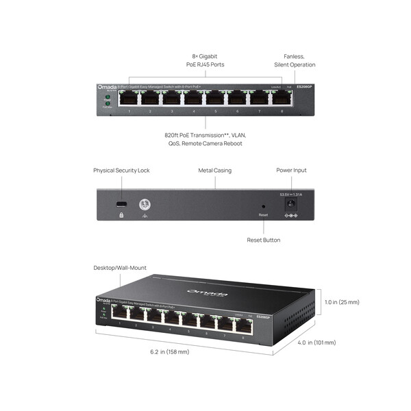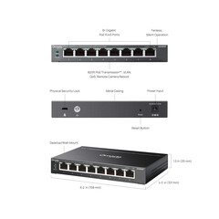 8-Port Gigabit Easy Managed Switch TP-Link Omada ES208GP with 8-Port PoE+