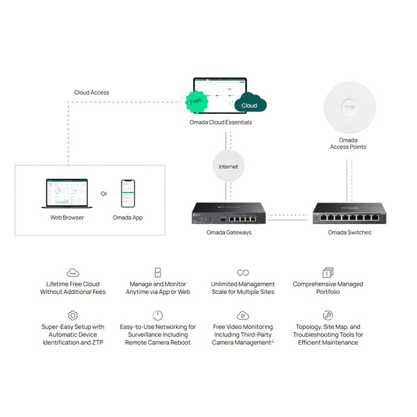 - Centralized Cloud Management via the web or the Omada app†
