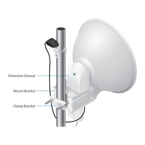 The pack of 2 AF-5G23-S45 5GHz 23DBi Antennas for airFiber AF-5X 5 GHz Carrier Backhaul Radio from Ubiquiti Networks delivers 2x2 dual-polarity performance. Incorporating a dish reflector design for excellent beam directivity, each airFiber X antenna features robust mechanical design using industrial-strength hardware for outdoor application use. The airFiber X antenna and airFiber X radio have been designed to seamlessly work together. The antenna has a built-in airFiber X radio mount, so installation requires no special tools. Snap the airFiber X radio securely into place and mount the antenna to get the optimal combination of airFiber X antenna and airFiber X radio for your PtP application.