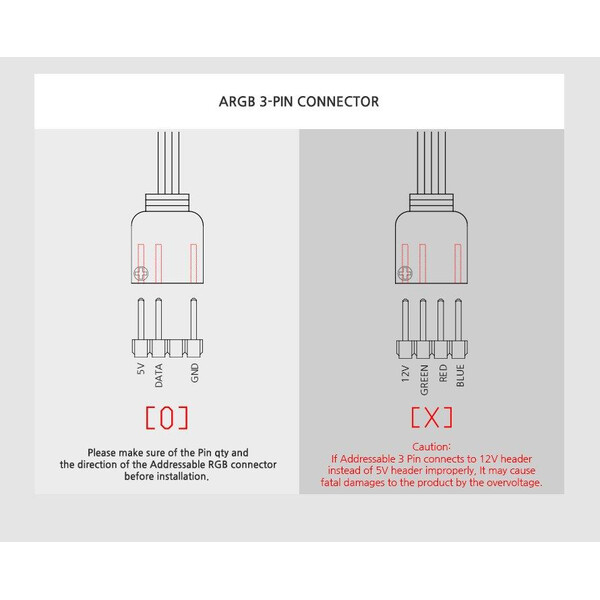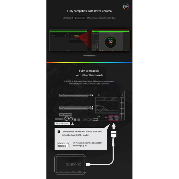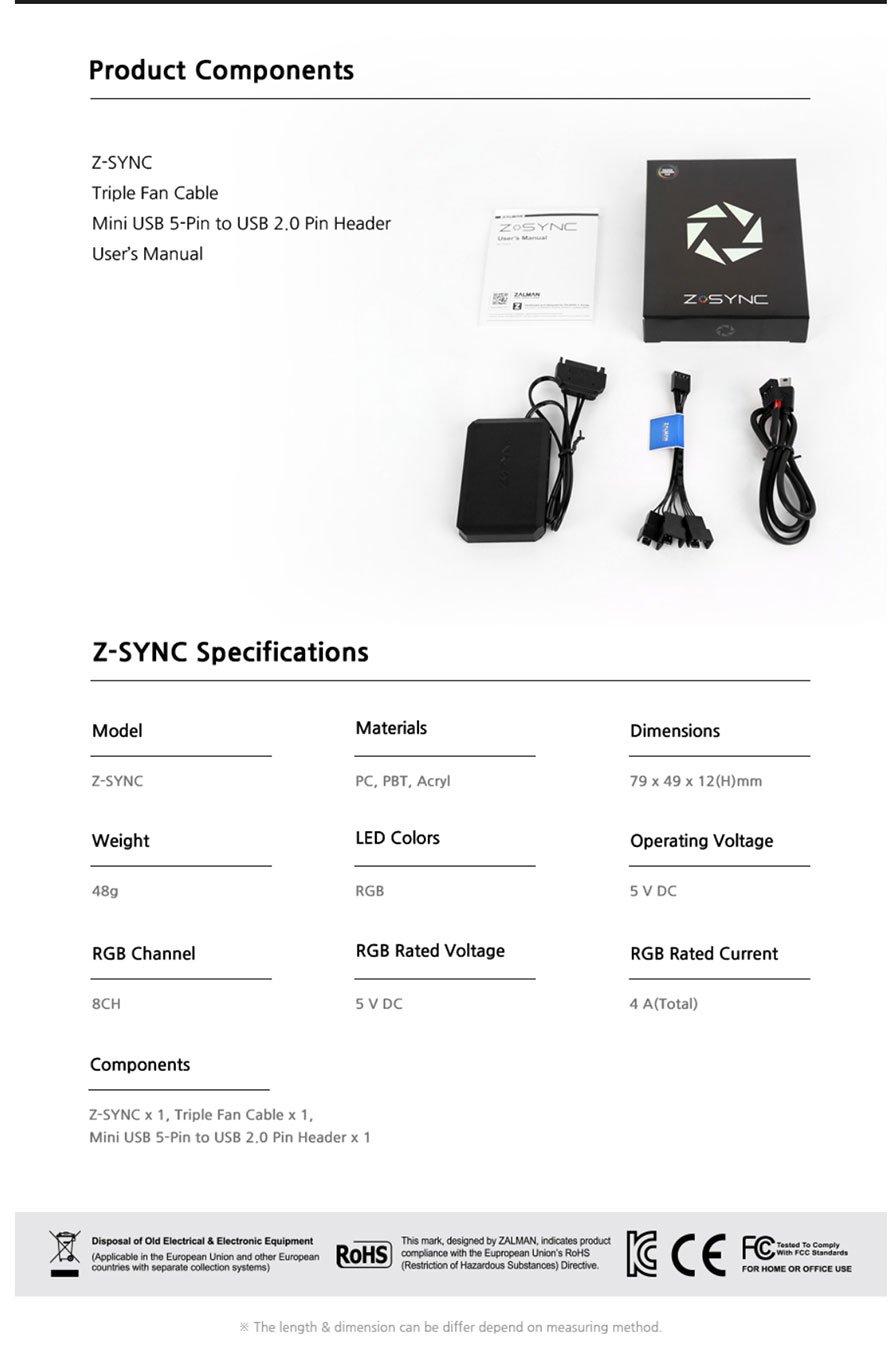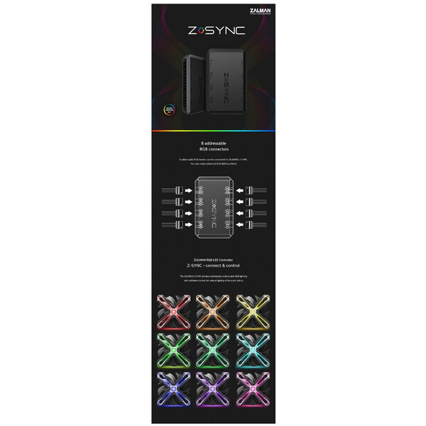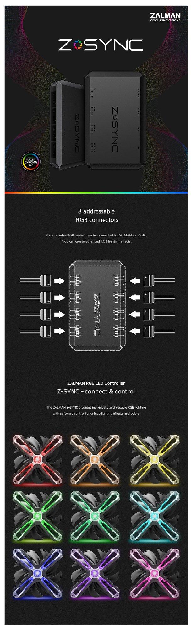 8 addressable RGB connectors can be connected to Zalman Z-Syng controller to create advanced RGB lighting effects.