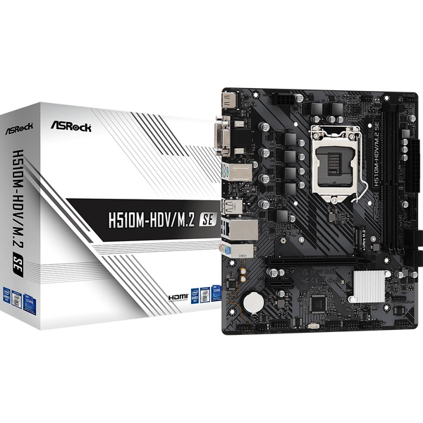 ASROCK Main Board Desktop H510M-HDV/M.2 SE (H470, S1200, 2xDDR4, 1xPCIe 4.0x16, 1xPCIe 3.0x1, 4x SATA3 , 1x M.2, 6x USB 3.2 Gen1, 6x USB 2.0, 1x VGA, 1x DVI-D, 1x HDMI, 1x GLAN) mATX, Retail