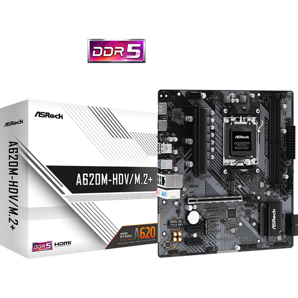 ASROCK MB Desktop A620M-HDV/M2, AM5, 2x DDR5, 1x PCIe 4.0 x16, 2x PCIe 3.0 x1, 1x Hyper M.2(PCIe Gen4x4), 2x SATA3 6.0 Gb/s, 1x HDMI, 1x DisplayPort, 1x Gbit LAN, 5x USB 3.2, 6x USB 2.0, 1x USB-C, Micro ATX