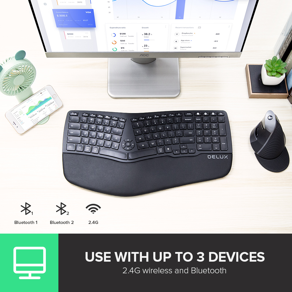 Wireless Ergonomic/Bluetooth keyboard Delux GM902 black