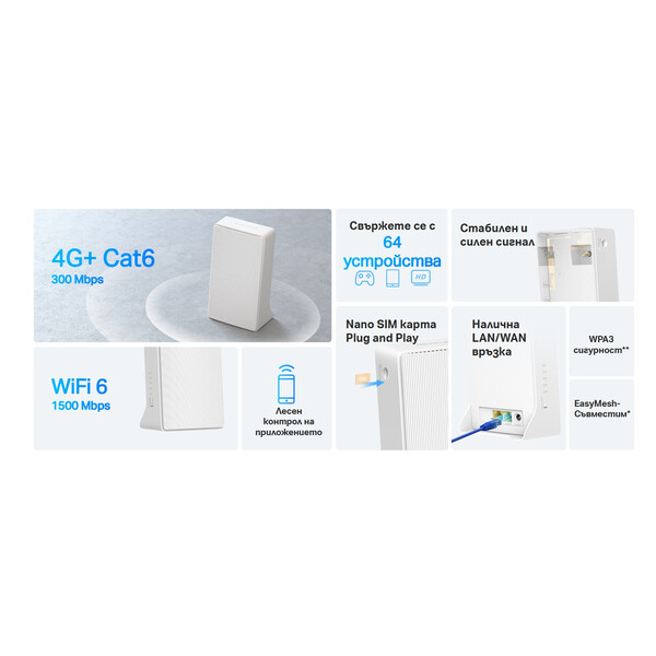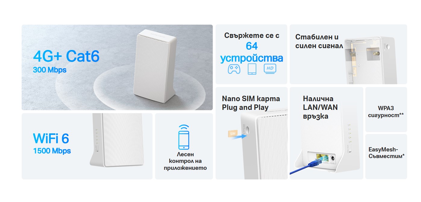 - 4G+ network – Enjoy the 4G+ Cat 6 download speeds up to 300 Mbps.