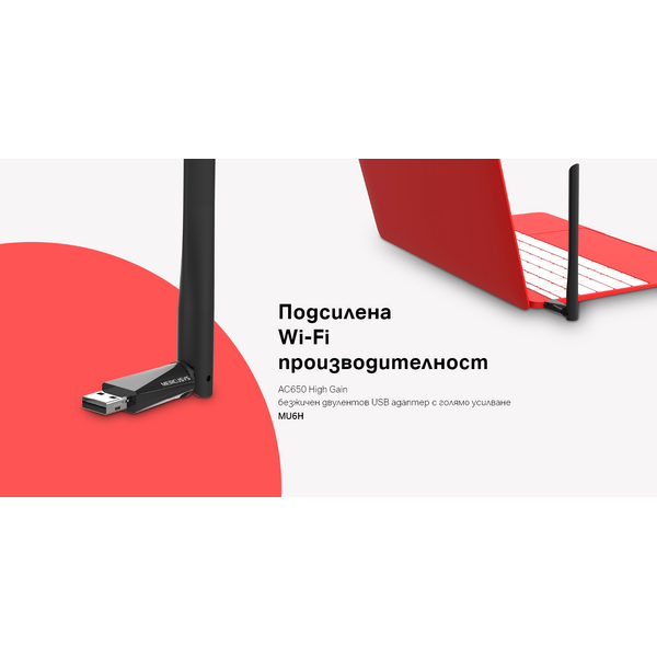 Безжичен USB 2-лентов адаптер Mercusys MU6H AC650