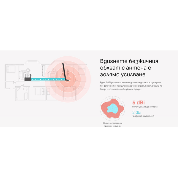 - Усилваща антена: 5 dBi антена с голямо усилване повишава силата на сигнала на приемане и предаване на USB адаптера