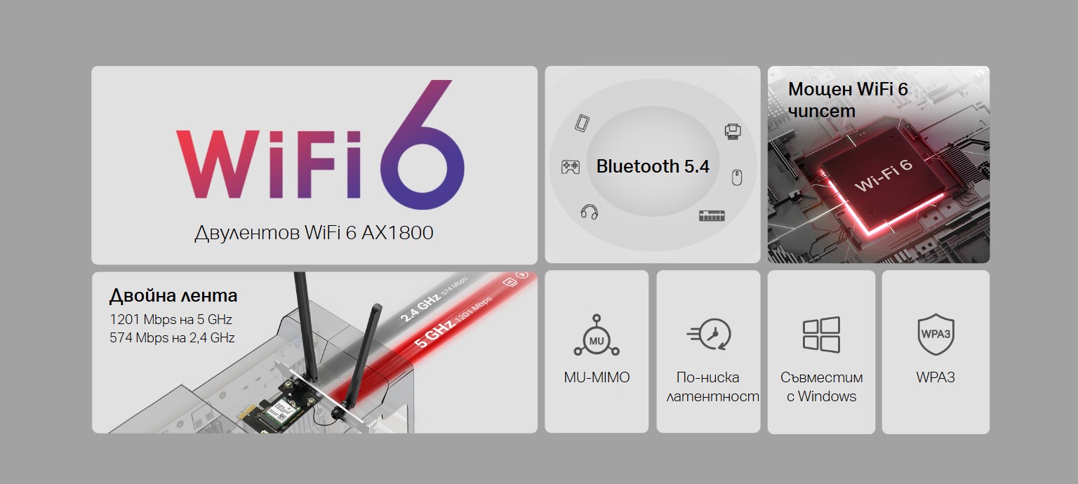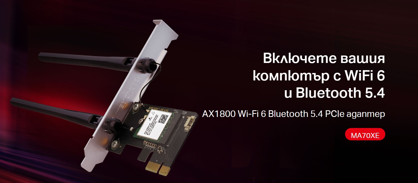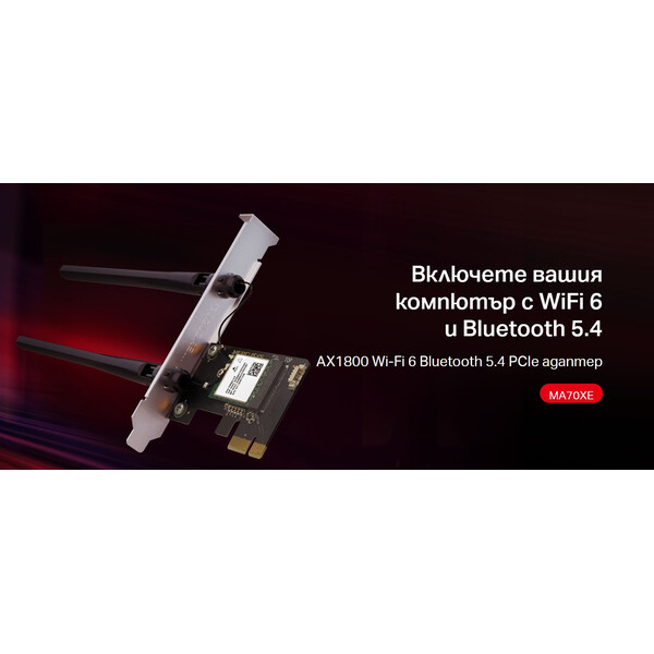 Wi-Fi 6 Bluetooth 5.4 PCIe Adapter Mercusys MA70XE AX1800