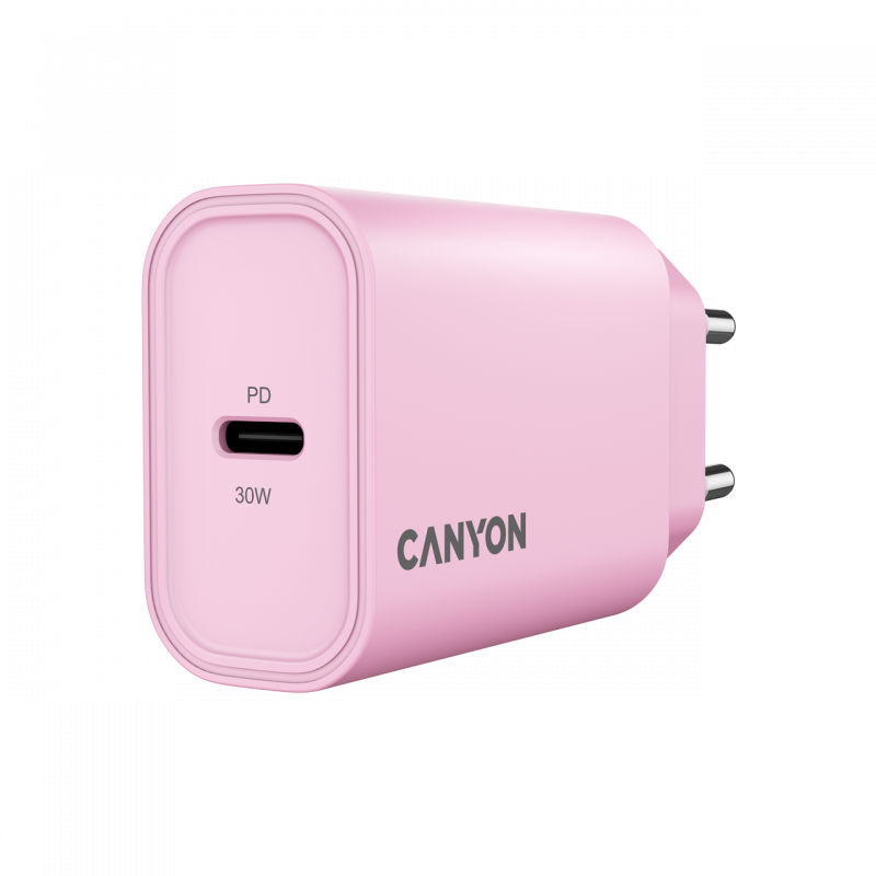 Canyon, PD 30W Travel Charger EU standard, Output: 5V3A, 9V3A, 15V2A, Max Power 30W, Pink. size: 87.8x39.8x23mm, weight: 62.3g