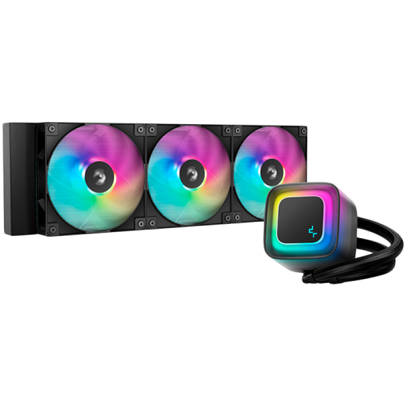 DeepCool LP360, 360mm CPU Liquid Cooler, 3x120mm ARGB PWM Fans, Dot-matrix Screen, Anti-Leak Technology, Black, LGA1851/1700/1200/1151/1150/1155, AMD AM5/AM4, 5Y, R-LP360-BKMSNC-G-1