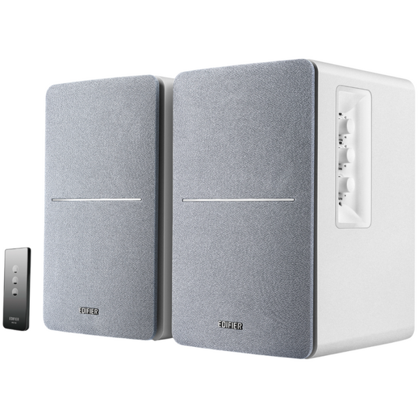 Edifier R1280T 2.0 Bookshelf Speakers, RCA, 0.5-inch Tweeters, 4-inch Drivers, 42W (RMS), Control Knobs and Remote Control, White/Silver