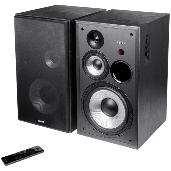 Edifier R2850DB 2.0 Bookshelf Speakers, BT V5.1, Optical, Coaxial, RCA, 0.75-inch Tweeters, 4.5-inch Drivers, 8-inch Woofers, Sub-Out, 150W (RMS), Control Knobs and Remote Control, Black