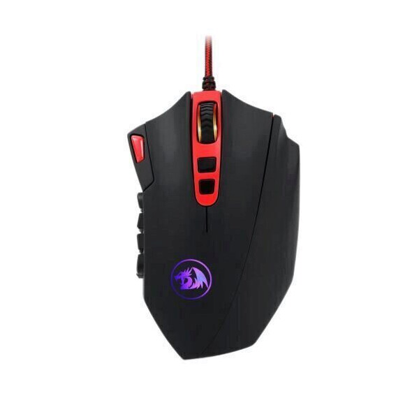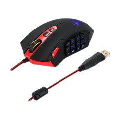 Redragon Perdition2 Gaming Mouse Black, 24000 DPI, 12000 FPS, 50G acceleration, polling rate: 1000/500/250 / 125Hz, Pixart PMW3360 optical sensor, Omron micro switches (lifespan: 5 million clicks), number of buttons : 19 (18 programmable), 5 lighting modes (16 million colors available), includes configuration program (macros, profiles, lighting mode, etc.), Teflon feet, gold-plated USB connector, cable length: 1.8m, dimensions: 118x75x39mm, weight: 150g (including weights 2.4gx 8 pieces), USB.