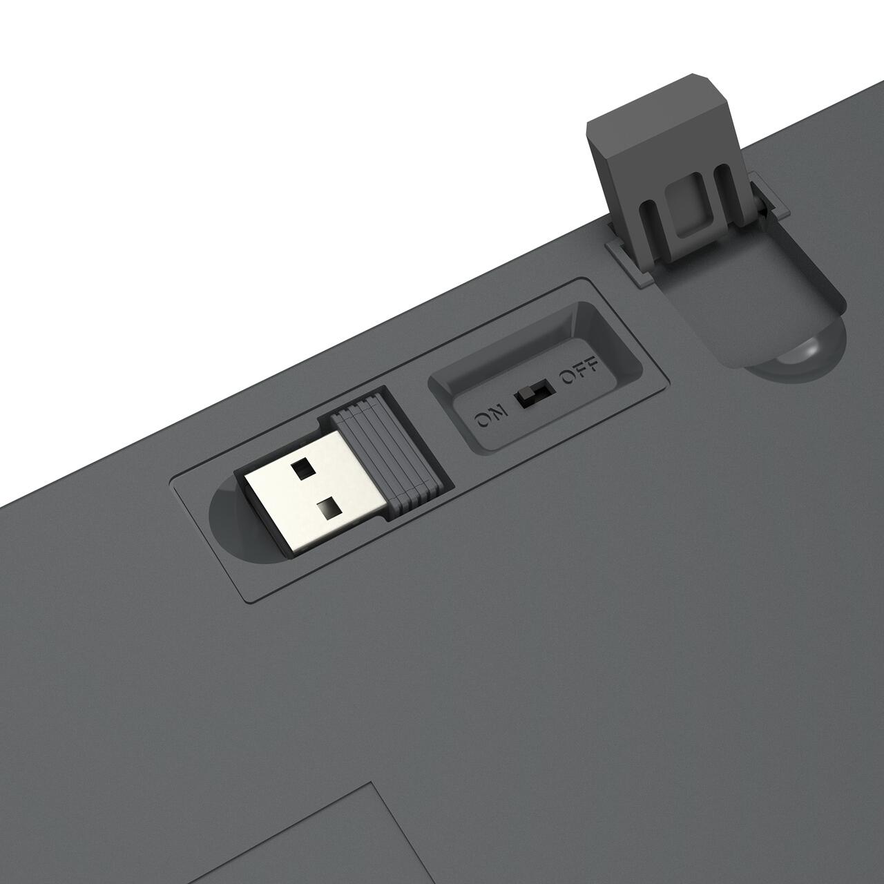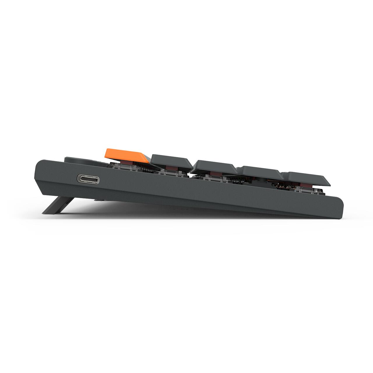 It supports Bluetooth 5.0 and 2.4 GHz wireless connectivity, allowing you to connect to up to 3 devices simultaneously using the FN + Q/W/E key combinations. A built-in 1600mAh battery provides extended wireless performance, and the keyboard also works via a detachable USB Type-C cable.
