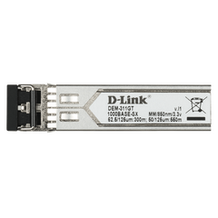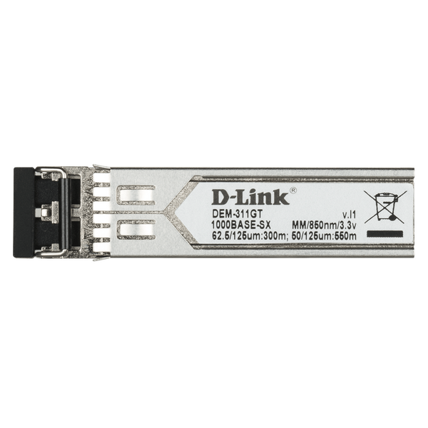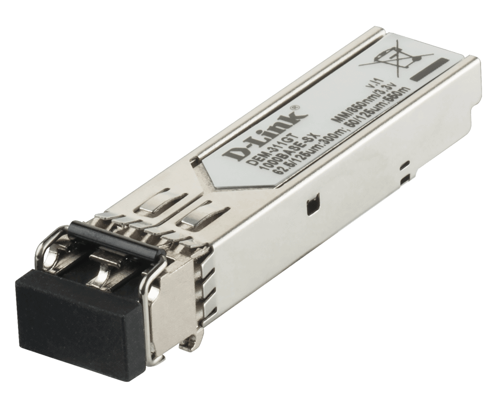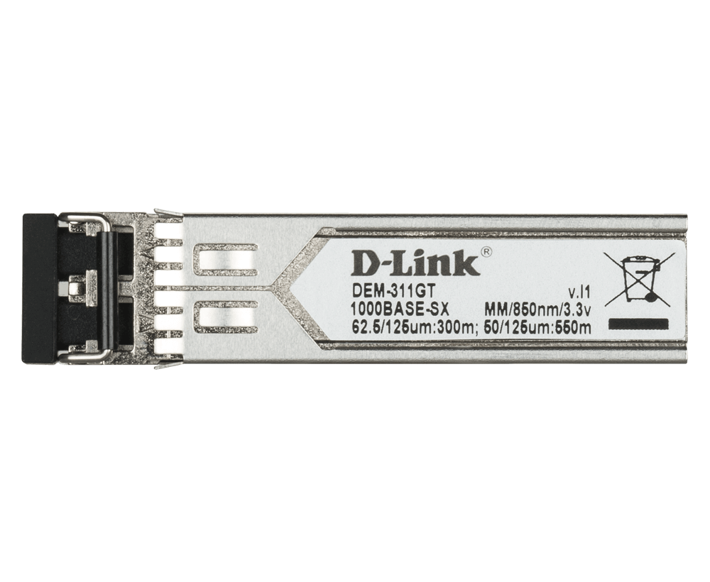 1000BASE-SX Multi-Mode 550 M LC SFP Transceiver D-Link DEM-311GT 850 nm multi-mode transceiverMaximum distance of up to 550 mDuplex LC connectorMSA, RoHS-compliantHot pluggable