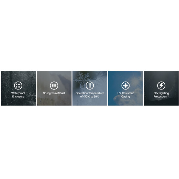 Rated as IP55 during Ingress Protection testing, a resilient weatherproof enclosure protects the gateway against harsh outdoor conditions.