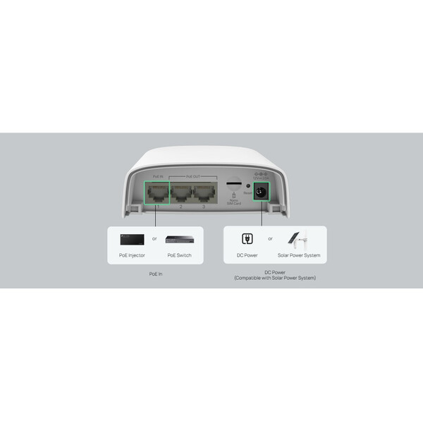 Combines 4G Internet access, Wi-Fi 6 wireless technology and 3 Gigabit PoE in/out ports all in one device, and automatic back up and load balancing between 4G and wired WAN can be reached. Enjoyed a powerful and versatile gateway with easy deployment.