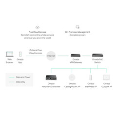 Remotely or locally manage up to 100 Omada access points, 10 gateways, 20 switches, and two DeltaStream GPON OLTs via the Omada App or Web UI.