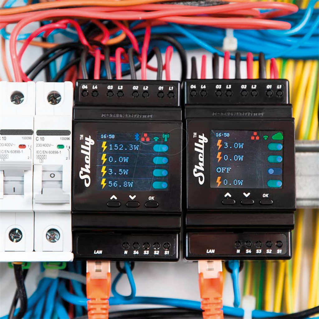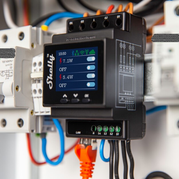Shelly Pro 4PM provides precise monitoring of the power consumption.