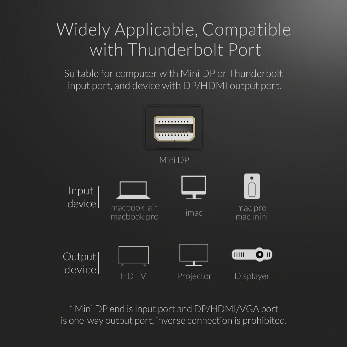 - Input interface: Mini DP (M) [MacBook Pro, MacBook Air, iMac, Mac Mini / Pro]