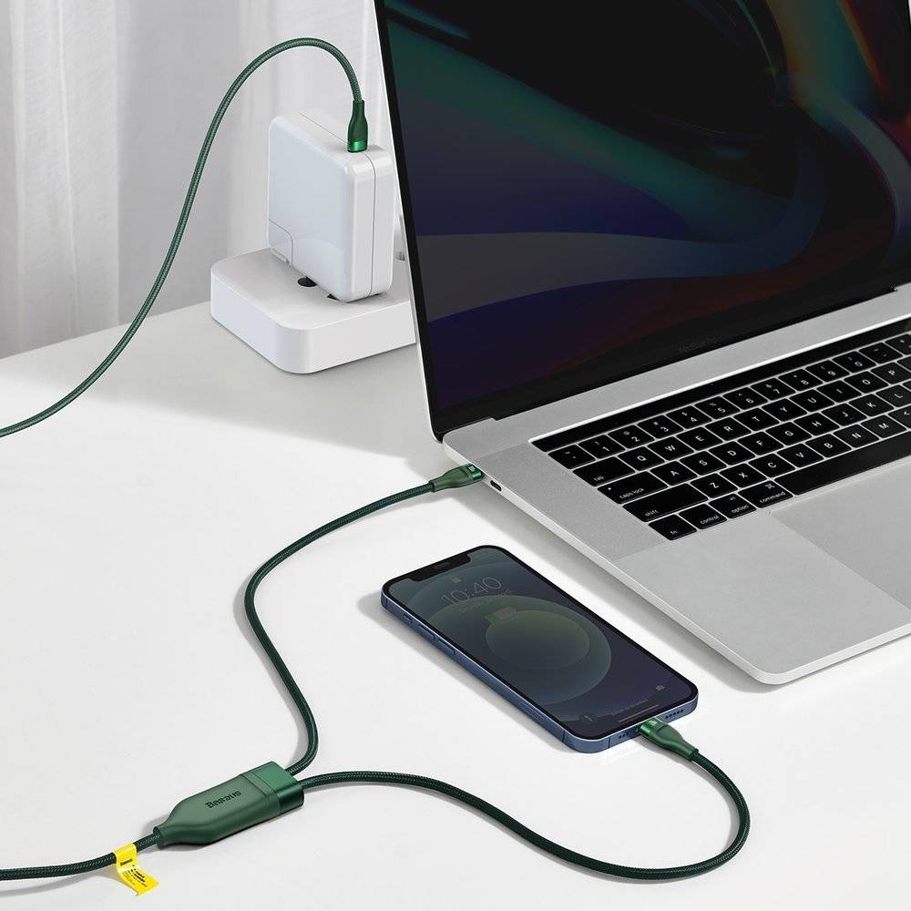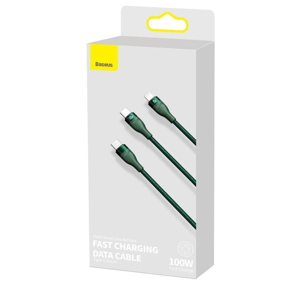 Data cable 2in1 Baseus Type-C 100W with output Type-C + Lightning 1.5mt CA1T2-F06 green