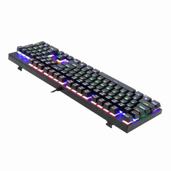 104 standard conflict free keys, full numeric keypad, 12 multimedia keys, and splash-proof design