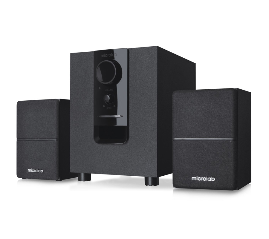 A great product for most of your listening needs, this easy to use 2.1 speaker system brings you full audio range playback. Featuring a woofer cabinet for strong bass and compact satellites for clear highs. Ideal for multimedia entertainment use in study room, bedroom or kitchen.