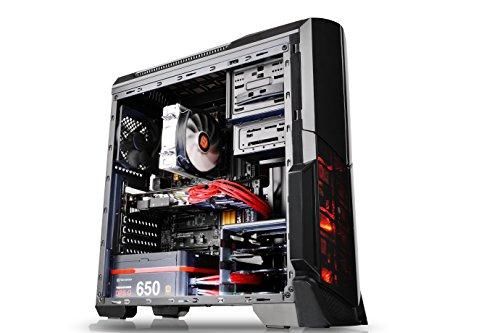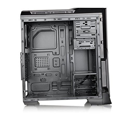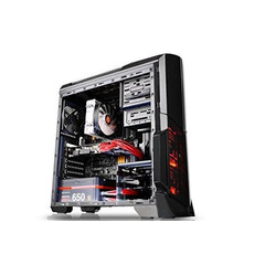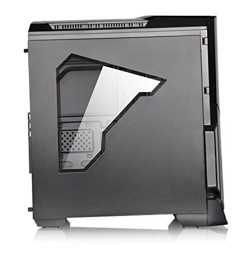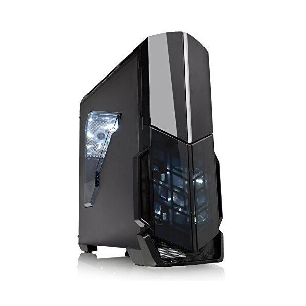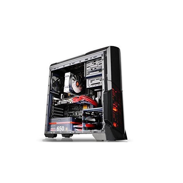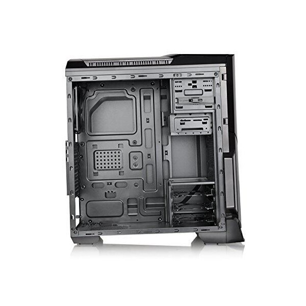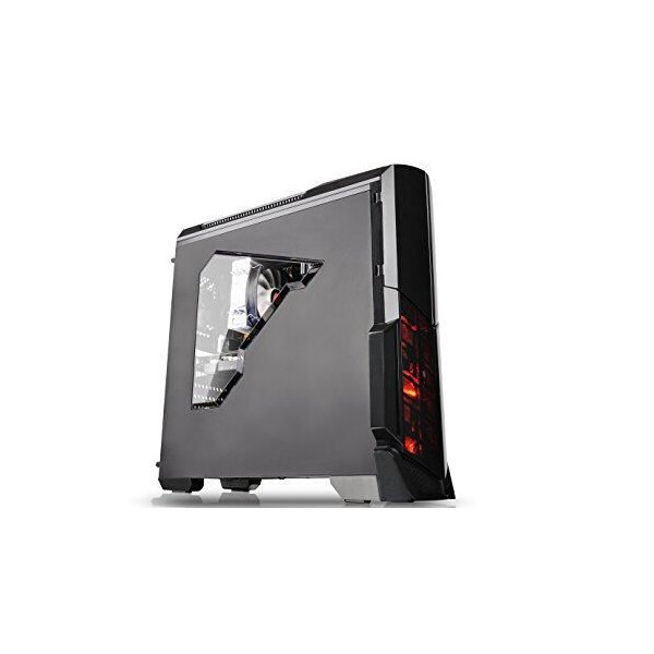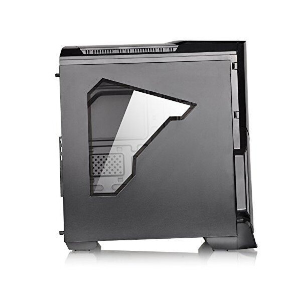 Designed for gamer, the glossy black front/top panels deliver stylish images. The heightened foot-stands at the bottom help enhance airflow, and a triangular transparent side window offers a direct view of the inner system.