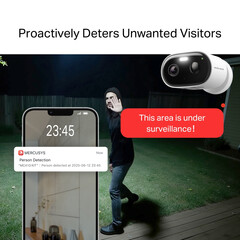 AI-powered detection identifies people with precision, and the built-in light and siren respond at once to deter unwanted visitors.