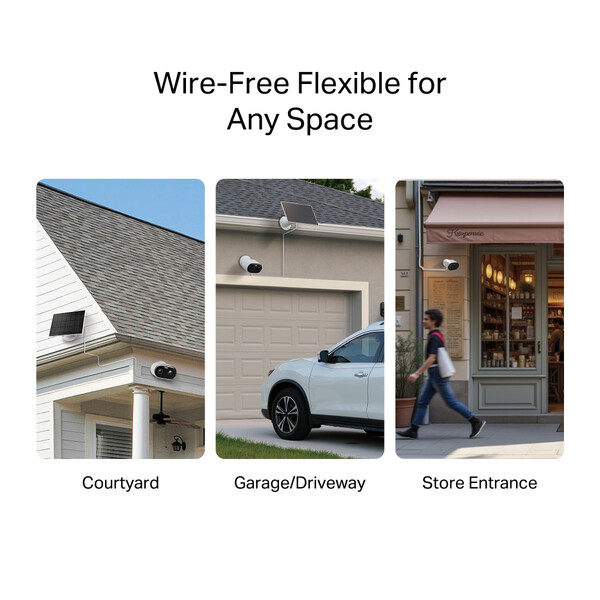 - Stays Connected, Rain or Shine: Dual-band Wi-Fi ensures stable connectivity, while IP65 weatherproof protection withstands any weather.