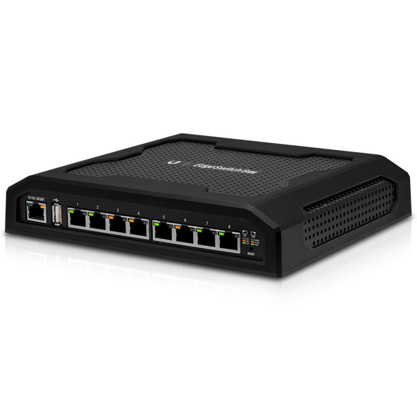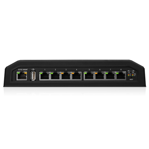 EdgeSwitch 8XP is an industrial-strength, 8-port Gigabit switch with 150 watts of power capable of powering 24V or 48V devices. Output voltage is controlled via the software interface. The EdgeSwitch 8XP delivers reliable passive PoE and fast 10/100/1000 Mbps connectivity to attached Ubiquiti devices and other devices that support passive PoE.