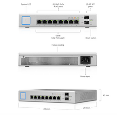 Dimensions 235 x 43 x 204 mm (9.3 x 1.7 x 8")
