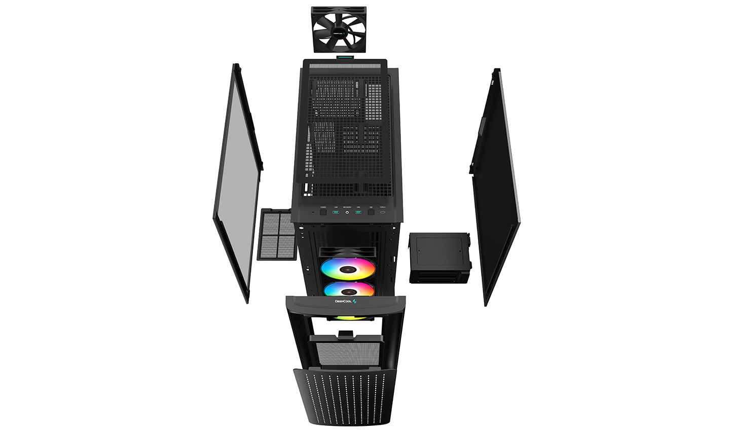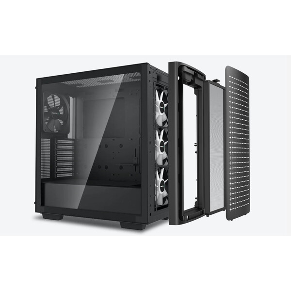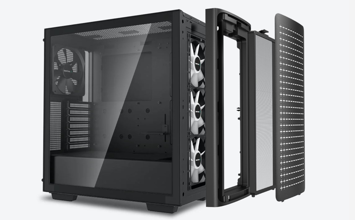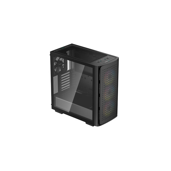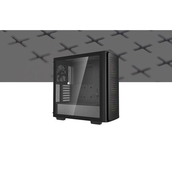 The DeepCool CK560 Mid-Tower Case offers a streamlined PC building experience with great compatibility and high-airflow performance thanks to four powerful pre-installed fans and ample ventilation throughout the chassis.