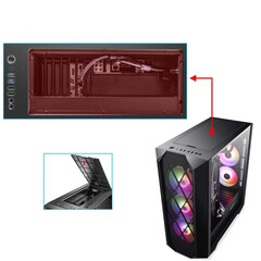 • The motherboard is mounted with the connectors on the top of the case, the connectors have a wire management space located under the cover on the ceiling, allowing easy access