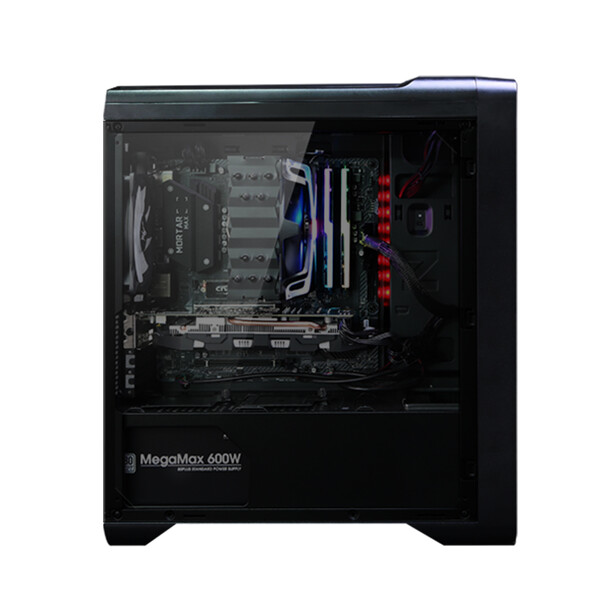 The durable and rough tempered glass in the side panel gives an idea of the overall look of the components inside the box.
