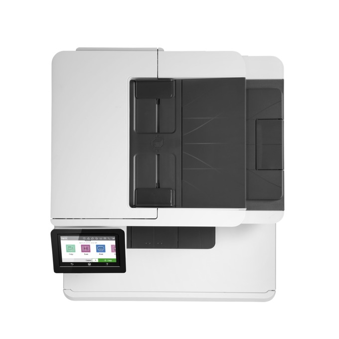 HP Color LaserJet Pro M479fdw; 4 preinstalled Introductory HP LaserJet Toner cartridges (Black~2400 pages, Cyan, Magenta, Yellow: ~1200 pages); In-box documentation (Getting Started Guide, Install Poster); warranty card (Where required); Internet connection is required to set up the printer. HP printer software is available at www.hp.com/support; Power cord; USB cable