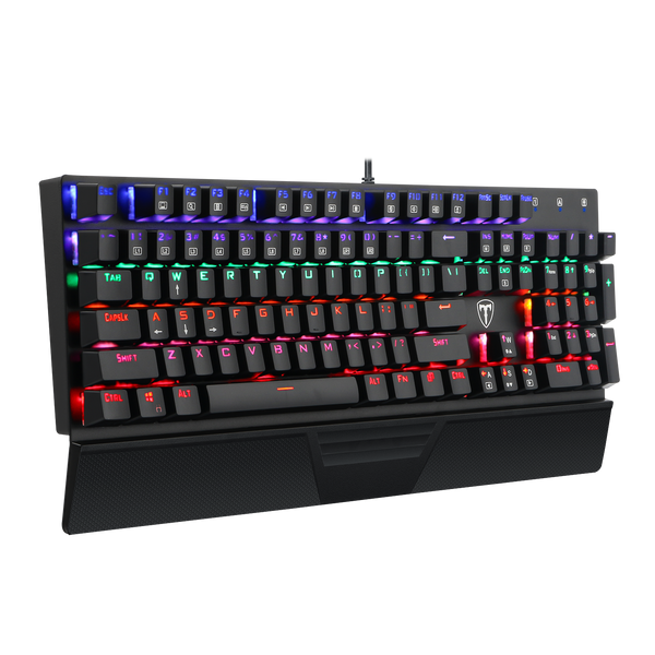 The T-Dagger Escort is a 104 keys mechanical gaming keyboard with rainbow backlighting.