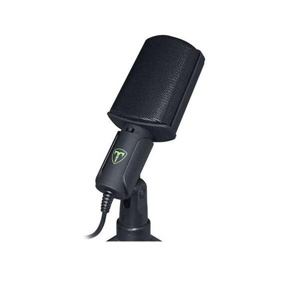 Black T-Dagger Oriole microphone with stand, omnidirectional condenser microphone (sensitivity: -30±3dB, impedance: ≤2.2KΩ, ≥36 dB, includes stand and sponge filter, ON/OFF button, cable length: 1.8m, connectors: 1x 3.5mm TRS jack, dimensions: 145x65x45mm, weight: 260g