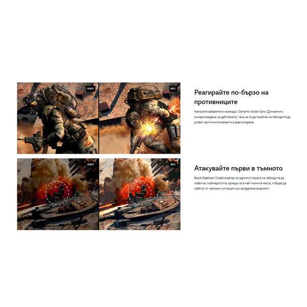 | Други | Flicker Safe, Black Stabilizer, Reader Mode; HDR10, HDR Effect, DisplayHDR 400; Headphone out |